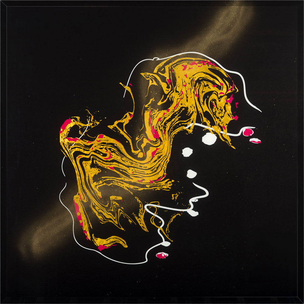 Tables with extra-clear glass top, tempered or layered based on the chosen decoration, bevelled, 10 mm thickness (5+5), transparent and decorated with the following processing: sandblasting, Trilli Effect (golden powder), gold coloured leaf (or gold leaf effect), painting and digital printing. Structure in 3 mm thick steel, with laser cut and calendering. The base of the top decoration can have various finishes: gold coloured leaf, brushed steel, brushed brass and gold, white or matt black paint.